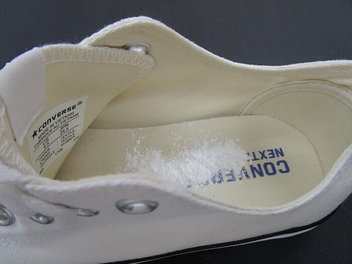 1.靴やブーツの中に直接適量(2~3振り)を振りかけます。
